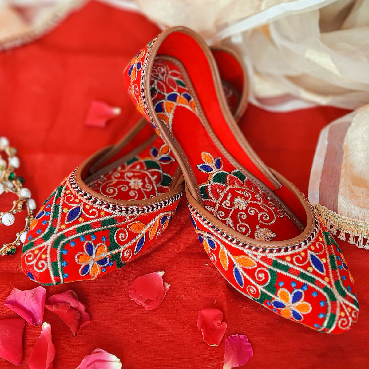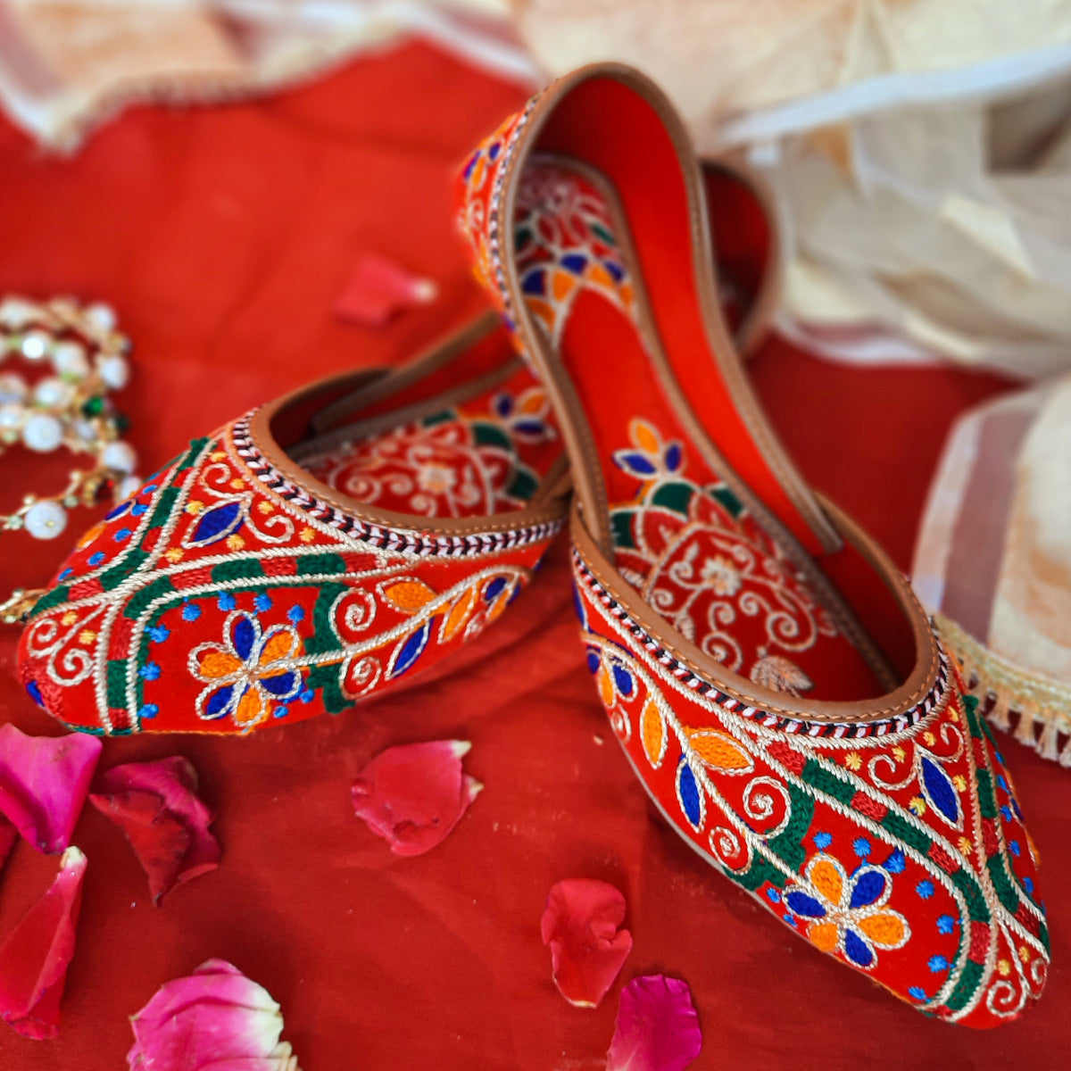 Step out in style with Marjaan, the fearless footwear choice for women! Our Multi Embroidery Khussa boasts a bold red color and intricate design, making a statement wherever you go. The inner padded sole ensures comfort while adding a touch of class to your look. Dare to stand out with Marjaan!
